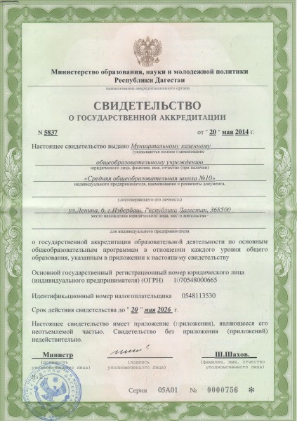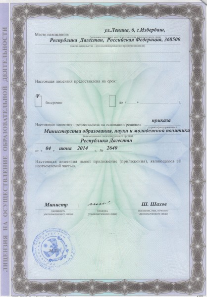 | Адрес местонахождения образовательной организации* | 368500, Республика Дагестан, г. Избербаш , ул. Ленина, 6 |