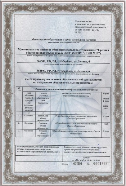 образования: Образовательный процесс в МКОУ СОШ №10 г. Избербаш строится в соответствии Уставом школы. Содержание образования определяется образовательными программами, разрабатываемыми, принимаемыми и реализуемыми школой самостоятельно в соответствии с требованиями государственных образовательных стандартов. Школа реализует следующие виды общеобразовательных программ, определяющих ее статус: -общеобразовательные